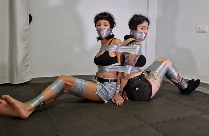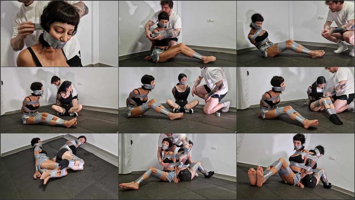 He then tapes up all of Mayla’s body anh once he’s finished he asks her to test how the tape feels and how tight it is by trying to escape…