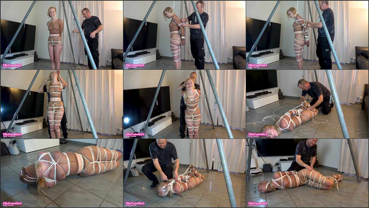 Prepare to witness a scene of exquisite bondage where the lines between pleasure and pain blur into a symphony of submission. In ” intense clip, I am UKCuteGirl Lucy Lauren, your quintessential blonde bombshell, ensnared in the seductive grip of nylon and rope. Encased from head to toe, I wear pantyhose as a second skin, with one pair lovingly stretched over my legs and another ingeniously modified to hug my torso, a hole strategically cut to tease and tempt. My sadistic rigger, Sasori, expertly secures me to his will, starting with a rope around my neck, tethering me to an immovable suspension point, ensuring my surrender is absolute. With practiced hands, Sasori binds my wrists behind my back, the ropes biting into my skin, a delicious prelude to the tight crotch rope that follows. He yanks it onto my pussy, the friction of the nylon against my sensitive flesh sending shivers of delight through my body. A hip harness is meticulously applied, its snug embrace a constant reminder of my captivity. My legs are next, wrapped together with an intricate web of rope, followed by my elbows, drawn so closely they kiss. A hemp rope gag silences my moans, while a chest harness accentuates my vulnerability. Sasori’s hands roam, spanking me just enough to sting, to remind me of my place. On the floor, another layer of nylon is draped over my face, a rope gag layered on top, intensifying the sensory deprivation. My toes are bound, and with a final, masterful stroke, I am hogtied into an impossibly tight bundle of ecstasy. I must surrender, relax into the tight embrace of my bindings, or risk succumbing to the sweet panic that threatens to overwhelm me. As if reading my mind, Sasori encases my face in cling film, leaving just enough space to breathe, to keep me on the edge of sensation. Finally, he half-suspends me from my chest harness, just enough to apply excruciatingly painful nipple clamps, turning my moans into a chorus of desire and desperation…