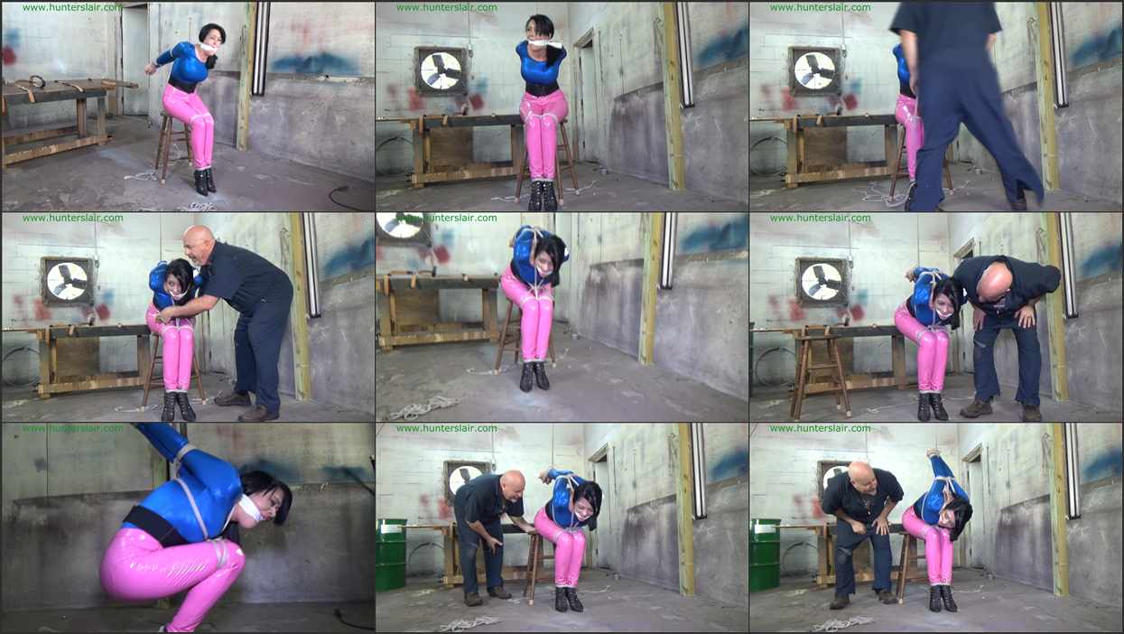 Busty Raven hair MILF Luna sits on a tall stool with her arms welded together behind her back in ropes. Her long legs are fused together with more rope around and ankles and knees and an old rag is pulled between her lips and wrapped tightly around her head to keep her quiet. Her bound wrists are tethered to a chain hanging down from an overhead pulley to keep her from hopping away. Luna can feel the tight ropes biting deep into the soft flesh around her upper arms, crushing her elbows completley together. She pulls desperately at the ropes in a futile attempt to get free but her struggles are in vain as the Hunter returns with even more rope. He ties a rope to her bound knees then runs the rope up over her shoulders and through her bound crushed elbows. She cries in protest as he pulls the ropes tight forcing her tits to her knees. The ropes are then wrapped around her rib cage and under her knees before being cinched tight. Luna struggles to keep her ass on the tall stool as her center of gravity is shifted forward. Then to her XXXX he pulls the stool out from under her ass and sits on it himself. Luna grunts in pain as her ass sinks to her feet pulling and stretching her poor shoulder and elbows. The Hunter taunts her as she struggles in her cruel bondage. Luna tries to lift her ass to relieve some of the stress on her shoulders and elbows, but her legs begin to burn, quiver and shake from the strain. He legs tire quickly and her ass sinks to her heels again. Luna begs and pleads with the Hunter to help her as she contines to taunt her with the stool. He finally places the stool behind her and she uses the last of her strength to lift her ass and search from the seat. Luna manages to get her ass in the edge of the stool but her ordeal is far from over. The Hunter shortens the strappado rope lifting her hands up high behind her back and leaves her precariously perched on the edge of the stool. Luna begs and cries through her gag for him to come back and not leave her like this. She realizes that sooner or later she is going to have to move and lose her precarious purchase on the stool.