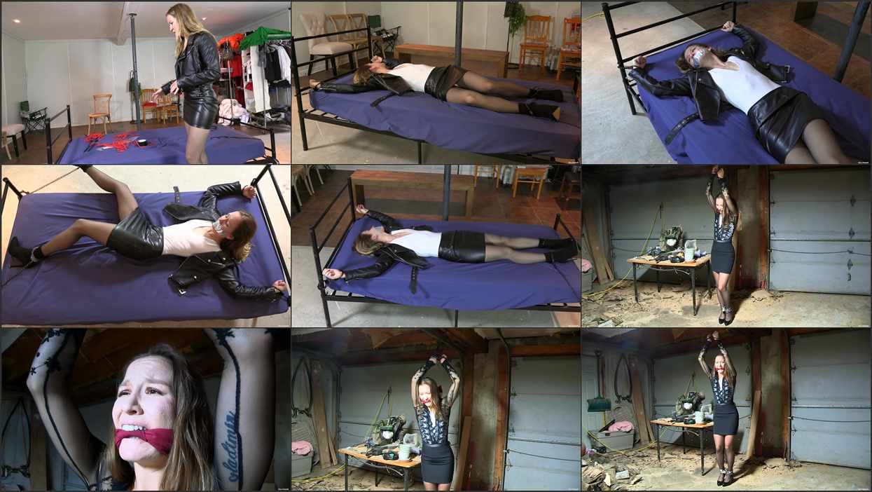 Taken from two videos starring Madison, we see her captured and handcuffed to a bed while wearing leather, and in the second part, she is cuffed with her arms above her head and made to stand. The latter sequence has been passed through a filter to remove the snowiness from the picture, a product of inadequate lighting. Ideal for those who want to watch a girl struggling in handcuffs and shackles, and chains, knowing that there is absolutely no way for her to escape.