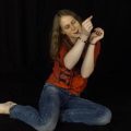 Madison tries on 4 different cuffs in front and behind her back and picks her favorite.