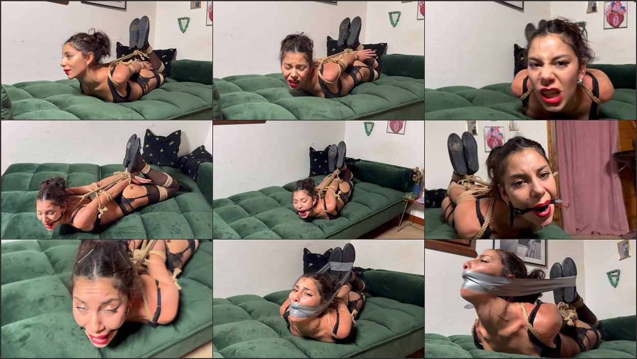 Mayla is Robert’s tutor and is usually very strict with him. This time, however, Robert has been quite good, so Mayla has agreed to play a game with him. Robert, having already thought everything through and realizing that Mayla is wearing the underwear and ballet flats that he likes so much, takes the ropes and ties Mayla up. She initially accepts the game but then realizes she can’t escape and starts to get angry. but for Robert, the game isn’t over, so he takes a ball gag and puts it on Mayla, then tapes her head to her feet to reinforce the hogtie and make sure her ballet flats don’t fall off her feet.