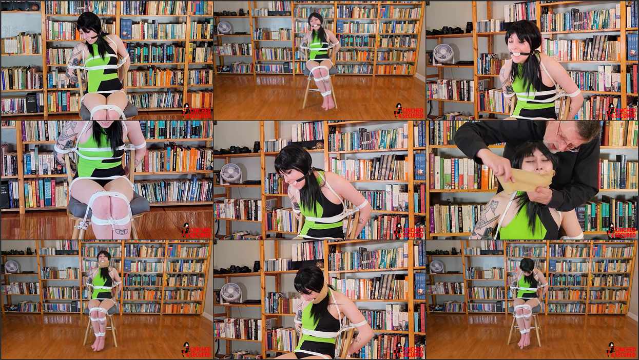 Shego (played by Medusa), arch enemy of Kim Possible, will have to put her pursuit of the redheaded do-gooder on hold, as she herself has become the target of a fiendish evil doer! Now tightly tied to a chair, the furious super villain is gagged and imprisoned by the fiendish construct of strength syphoning bonds and gags! Which every passing second her struggles intensify even as she grows weaker and more helpless. Perhaps the worst thing is not knowing why she has been captured or what lies in store for her, but if Shego ever DOES escape, she’ll be very interested in using this technology on Kim Possible when next they meet!