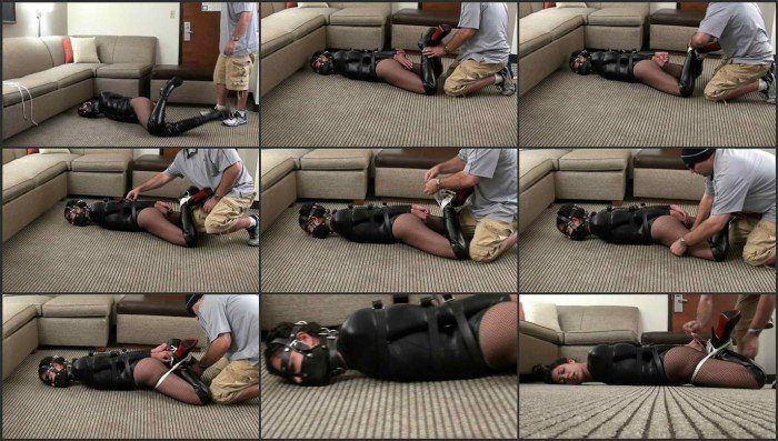 Merula confesses to me that she has a particular fetish for leather restraint bondage! I do my best to satisfy her craving to be held in tight bondage with leather straps! Merula looks incredible in a leather leotard, fishnet stockings and killer high heeled platform over the knee boots! She is dressed perfectly for leather restraint! And that is exactly what she gets! Poor Merula gets more than what she bargained for…she finds herself humbled and silenced with a heavy leather muzzle gag that is tightly buckled around her head and cute face, rendering any sounds she may make to soft whimpers! Her arms are crushed to her body with heavy leather buckling straps…once applied, there is absolutely no escape! Merula looks so sexy as she is left for a bit to struggle and experience her leather captivity!