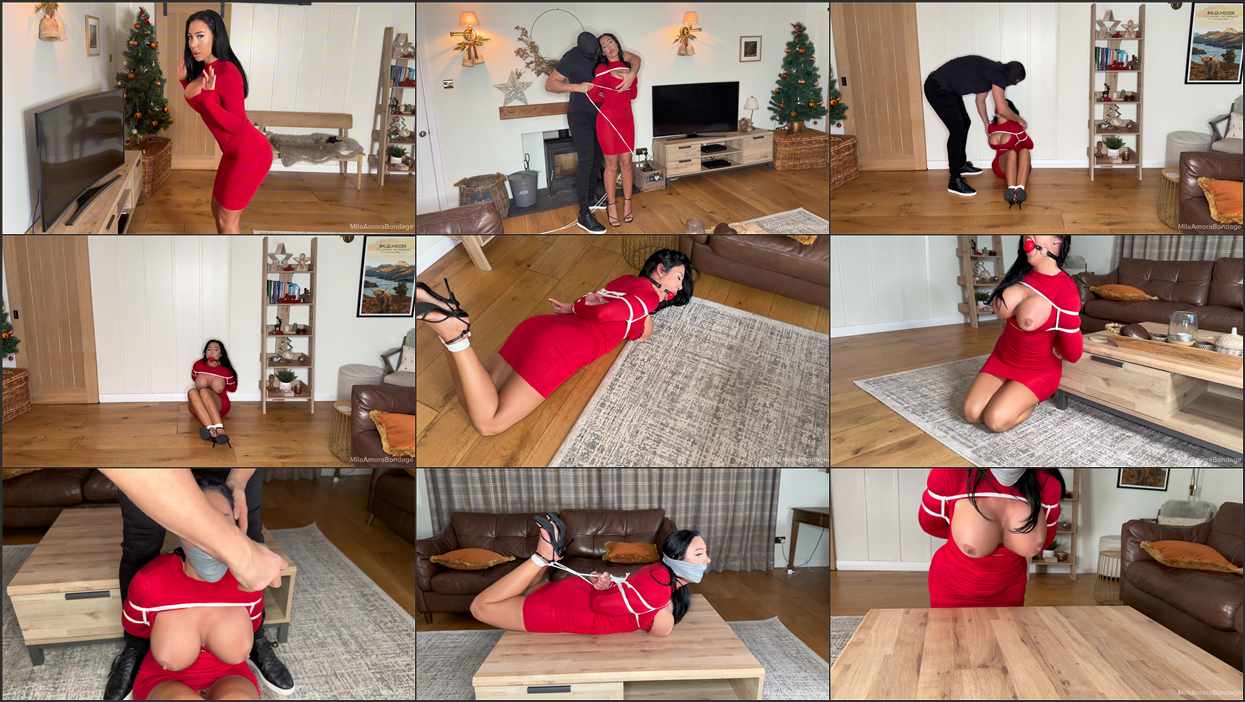 Desperately, she rubs her wrists against a bookshelf, then drags herself toward a sharp table corner, hoping to wear the ropes down. Her reputation is on the line—she refuses to lose. But suddenly, he’s back. Catching her mid-escape, he laughs and decides she needs to be secured even more thoroughly…