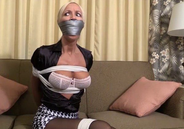 MILF Amanda tied up, tape gag, stuffed in her mouth