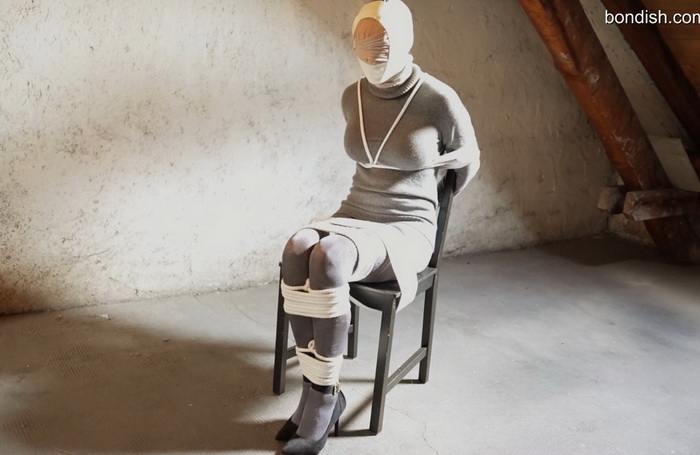 Miss D is a truly relentless rigger. It’s very intense watching her tie Pixie to a chair with rope after rope. And at the end, there’s a pantyhosehood and a nice and tight microfoam tape gag. Watch at D’s very unique rope-technuique which is quite effective and still comfortable for the rope bunny.