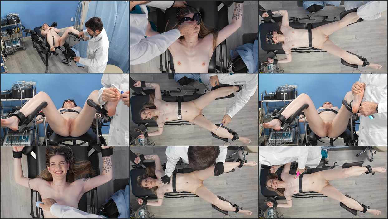 Aubree Blair goes to the gynecologist and is told to strip naked, then is strapped to the gyno chair with cold hard steel of the cuffs as well as straps keeping her firmly in place. The doctor proceed to check her response to sensations through a series of tickle treatments, using a variety of tools to ensure she has a proper response.