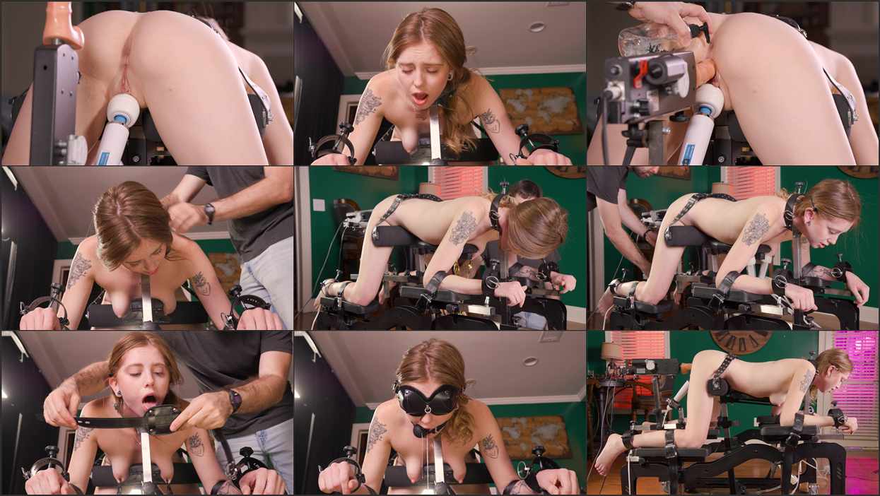 The wand is turned on, slowly ramping up over time, as her moans grow louder and louder, as the orgasms begin hitting her. The dildo of the fucking machine is shoved into her hole, while the machine is turned on and ramped up in speed over time to yield even more orgasms from her.