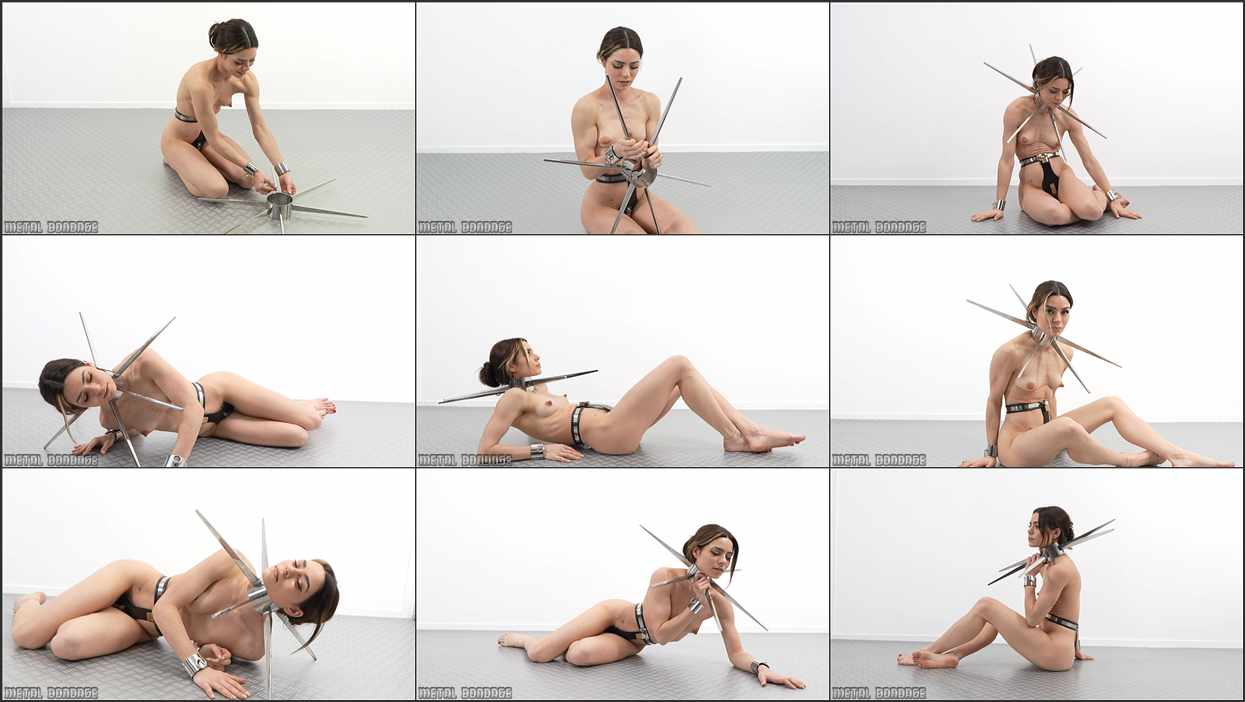 My gorgeous studio assistant River keeps finding new items from my collection of steel restraints. She asked me about this HUGE heavy spiked collar, and when I told her it is called the ‘Sleepless Collar’, she was intrigued…