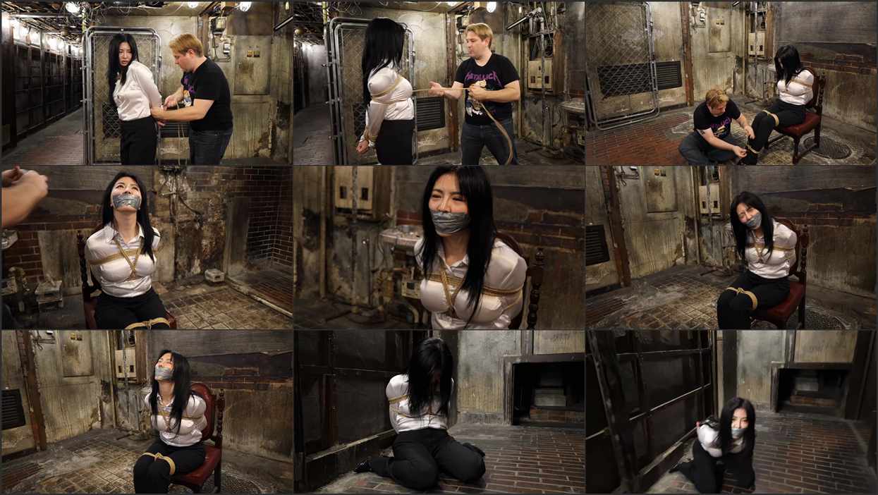Nao Innari! A salary woman is tired and ready to go home after a long day at work, she is in Shinjuku station, but in the maze the biggest train station in the world is, Nao gets lost, somehow she goes down a stair until she finds a door and more stairs that leads her below the tracks platforms, to the abandoned tunnels. There she finds a mysterious man, a foreigner. Nao asks him how to get back to the station, but when the man approaches, he grabs her and covers her mouth. He explains Nao that he is an international mercenary and he’s been using these abandoned tunnels as hideout. The man doesn’t know if Nao is a police officer, so he ties her up tightly with rope until he finds out. Then he stuffs a sock in Nao’s mouth and gags her with several stripes of duct tape. Nao is only an innocent and naive salary woman in her way home, but she ended up tightly tied up and gagged in a dark chamber deep below Shinjuku Station! Includes Behind the Scenes footage.