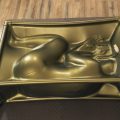 Madalynn is dressed in a black latex hobble skirt and a black latex top with gold detailing on the front. Mr Big Boss takes some leather gear he has assembled and starts strapping her arms together. The premise is that he’s noticed she’s a bit unstable in her very high heels and he wants to help her get over that as quickly as possible. To aid her in her walking he straps her ankles together and chains them in a hobble. Moving up Mr Big Boss uses a head harness ballgag to silence her and straps it on tightly so as not to hear any complaints when he takes the leash off the table and clips it to her collar. Madalynn lets out a bit of a worried cry when she realizes at this point what he has planned for her…