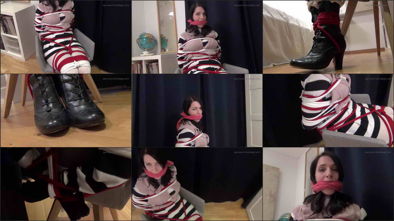 Paula dressed in wool and wrapped in ropes, fetish bondage