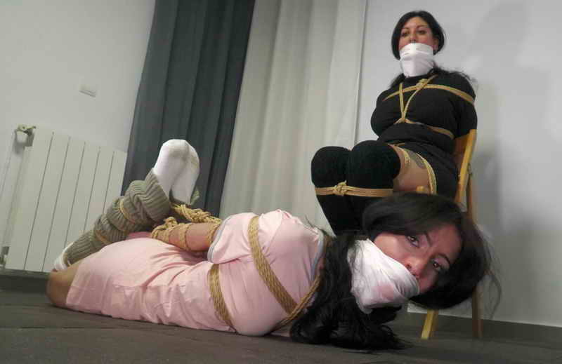 Dyanne and Persefone are a happy couple who live together. When Persefone leaves to get groceries, Dyanne is left alone at home. That’s when burglar Liricaa gets inside! She sneaks from behind and grabs Dyanne’s arms and ties her hands with rope. “What the. MMMMMMMMMPPPPPPPPPHHHHHHHHH!!!!!!!!!”. Liricaa handgags her. She gags her with a ballgag, and then a OTM gag. She ties her up really tight with rope to a chair. When she’s done, Persefone comes back. She can’t help her girlfriend because Liricaa traps her too! “MMMMMMMMMPPPPPPPPPPPHHHHHHHHH!!!!!!!!”. Liricaa also gags her with a ballgag and a OTM, and then ties her up really tight in a hogtie. Liricaa leaves to get the money while the two damsels are left there, tied up and gagged, totally helpless! “MMMMMMMMPPPPPPPHHHHHHHH!!!!!!!!!!”.