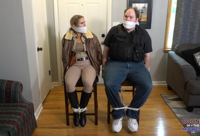 Gi Blair has returned to work this Swat officer protecting a briefcase with classified information. Blair hears a noise and goes to check it out it a burglar Rachel. She grabbed and dragged back into the room where he complies and they both get their mouth stuffed and a tight gag to keep it in will they get free and catch her.