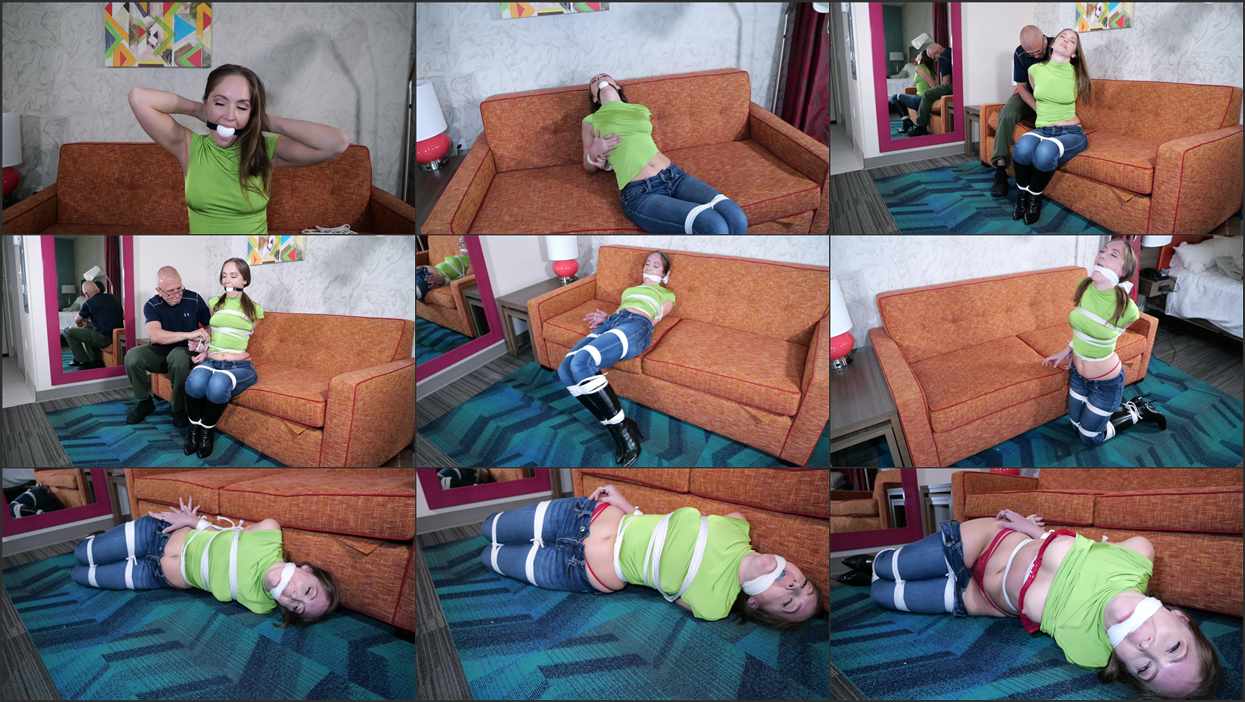Rachel is into bondage and because she cannot find someone to tie her up, she practices, self bondage, and she has become very good at it. Today, she ties, and ball gags herself. As she pretends to struggle, she is very tirned on, but in her mind, she knows that she can get loose, and wishes she could be tied, helpless. Her wish comes true when her male friend comes in to find her.. When he removes the gag, Rachel tells him to put it back in her mouth and tie her tighter, so she cannot get loose.