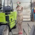 Rachel Adams shows up at a little resale shop with a lot of shopping bags. The owner asks if she’d like to leave her shopping bags in the office but she says no. She doesn’t trust the woman and sees on camera that she is actually stealing. When she comes back to pay for an inexpensive item the store owner says I know what you’ve taken and I’ll call the cops on you if you if you don’t play my little game. The woman reluctantly agrees and the shop keeper decides to have her strip down to her underwear which happens to be an open bottomed girdle and stockings. (Bondage starts around the ten minute mark, she does try some furs and heels on while shopping). Then she puts her in some of the things that she wanted to steal like a fur coat, fuzzy ugg boots and a fur hat. She gets to experience 2 ballgags and a chair tie and lots of tape around her head ending in a hogtie with earmuffs over her eyes. The shop owner took lots of videos and photos to share with the world to get even. Hopefully the little thief learns her lesson.