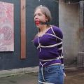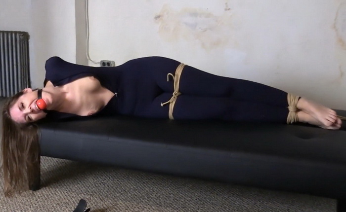 Sexy Rachel has been captured and brought down to the basement dungeon for some torment! This time she will be tightly bound and gagged and her sexy feet will get all the attention from her cruel captor! Rachel is tightly cleavegagged and escoreted into the dungeon! She is bratty and defiant but she is no match for her captor! Rachel is definitely dressed for distress, she wears a skintigh, dark blue athleticwear catsiut, black leather, platform, stiletto heeled ankle boots and short black leather gloves! Rachel is helpless as her captor progressively ropes her up! He pays close attention to make the ropes nice and tight! The ropes squeeze poor Rachel into submission and compliance!