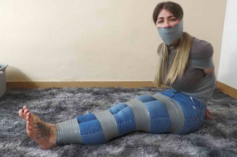 Liricaa is studying hard for the exams. But lately she can’t focus because her neighbor Rainbow Lau is always with the music up and doing so much noise. Liricaa decides to find a solution. She sneaks into her house and grabs her from behind. “What the… MMMMMMMMMMPPPPPPPPPPPPPPHHHHHHHHHH!!!!!!!!!!”. Liricaa ties her hands with tape and handgags her. She gags her with a big ballgag, and then she ties her up really tight with a lot of tape. Liricaa tells her that she’s tired of her, she needs to study and Lau needs to be quiet. Liricaa leaves a few minutes and Lau is left there struggling. When Liricaa returns, she comes with the laundry. She picks some dirty socks and decides to change Lau’s gag. She removes the ballgag and gags her with the socks and a huge tapegag. Now Liricaa can properly study, so she leaves and Rainbow Lau is left there tied up and gagged, totally helpless! “MMMMMMMMMMPPPPPPPPPPPPHHHHHHHHHH!!!!!!!!!!!”.