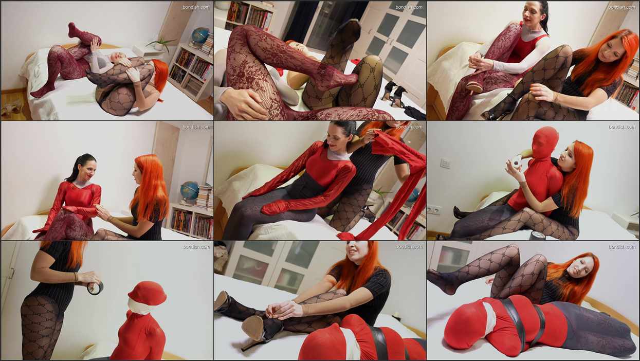 Renee and Paula decided to have some pantyhose fun together so they arrange a date with a strict rule: Only pantyhose allowed. What then starts with a nice legshow and foot teasing soon ends with one of them encased, bound and gagged in finest hosiery!