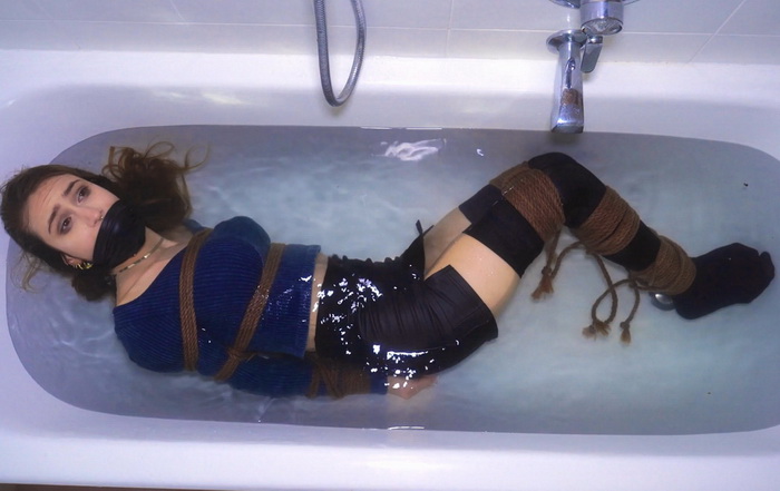The man ties her tightly, arms at her sides, ties her legs, and gags her with a cleave gag. His plan is to hide her in his basement until he can get the ransom from her wealthy family. Rey is scared; it’s dark and dirty, her clothes are getting dusty as she thrashes and rolls. “MMMMPH…” She moans and struggle, no longer has her shoes on, there’s no way she can escape, but after endless minutes of waiting, the man returns again… He grabs her by the feet and drags her away into the darkness…