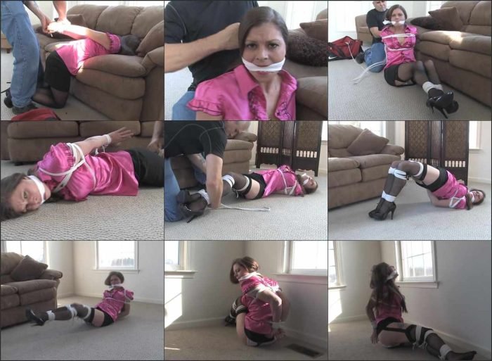 Real Estate Lady Riley Rose brings a man to a vacant house because she believes he is a potential home buyer. But once inside, Riley finds out that he is really a bad guy. To keep Riley from getting away, the man ties her up with rope that he brought along. And, just in case Riley wants to start screaming for help, the man stuffs and ties a gag very tight in her mouth. Riley is then left to struggle bound and gagged as the man makes sure that no one is coming or saw what is going on. Riley realizes that her only chance for escape is now, because once the man throws her her in the trunk of his car and drives away, no one will ever find her.