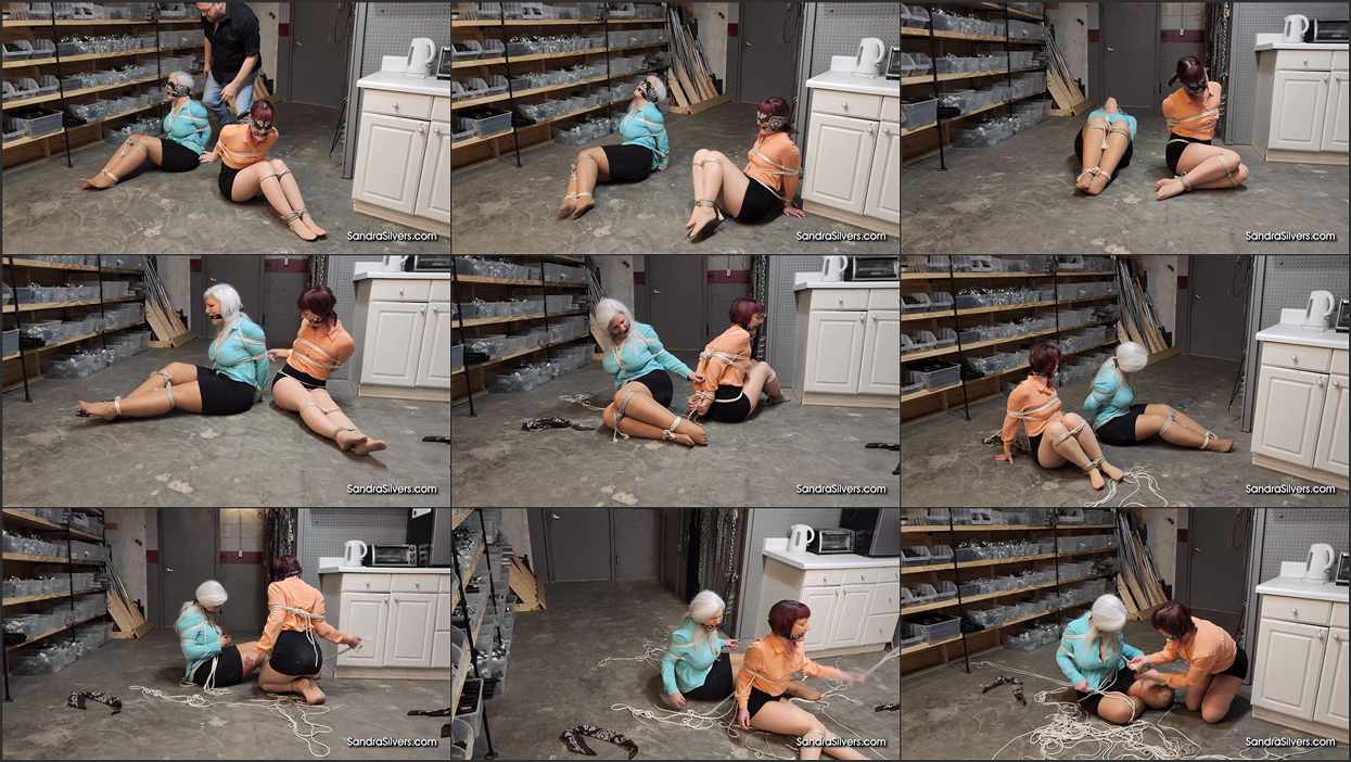 In the stark, sterile stretch of a sprawling steel storage warehouse, two silenced secretaries squirm upon the cold concrete floor. Sandra Silvers, the stunning, silver-haired MILF with mouthwatering Mediterranean tanned curves and tawny, tanned skin, finds herself frightfully familiar with fetishistic binds, yet this predicament proves particularly perilous. Beside her, AJ Marion, the pert, pink-haired pixie with a slender silhouette, shares similarly stringent securities. Both beauties were briskly bundled from their boring bureau by broad, blonde, bearded Ben—a burly brigand with a penchant for pilfering pretty professionals.