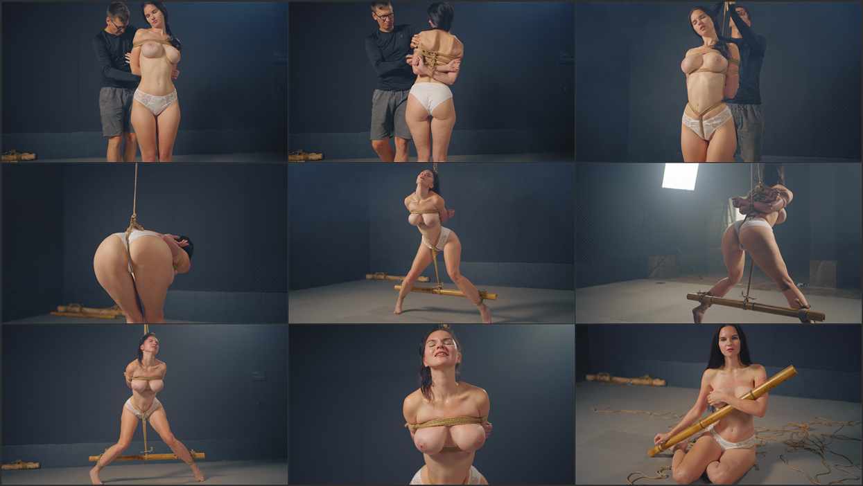 In this film, I offer Sangini to try something unusual. I tie her tightly and pull her body to the bamboo tied to her legs. The girl cannot fully stand on her feet and has to stand on tiptoes. She also cannot fully straighten up, and each attempt increases the pressure of the crotch rope on her pussy.