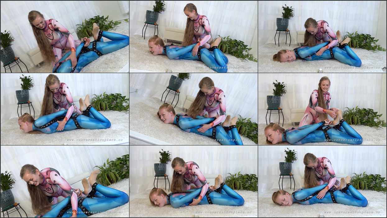 Scarlet can barely take it! She’s gasping for air and squealing from the tickles. Ivy is beaming with energy. What a win.