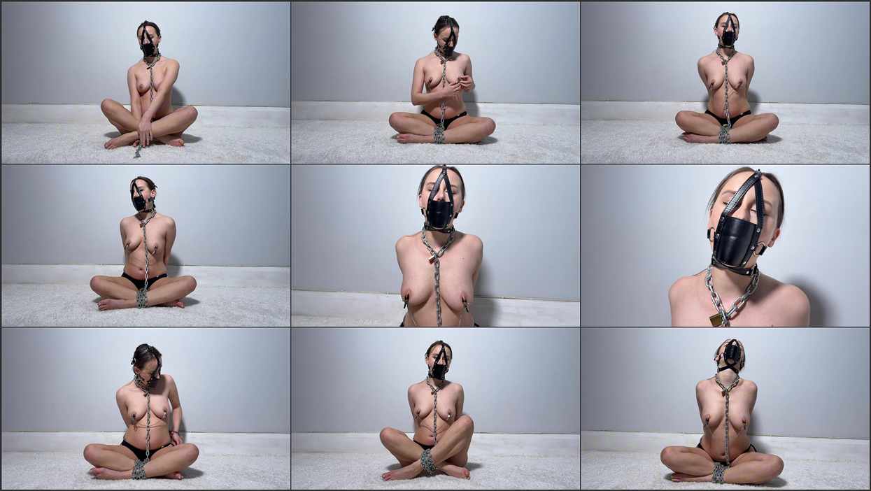 This is my self bondage Madness. The heavy chains wrap around ankles, pulling me tight until I’m completely bound, the handcuffs keeping me undeniably restrained. The cold metal settles against my skin, a constant reminder that I chose this. I place nipple clamps on my nipples, to intensify the sensations.