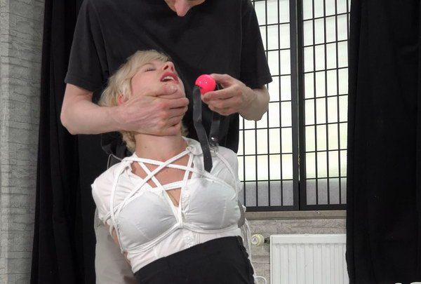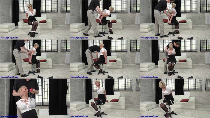 [sexytiedgirls] Business lady Taylor tied up in pantyhoses [ballgag, rope bondage]
