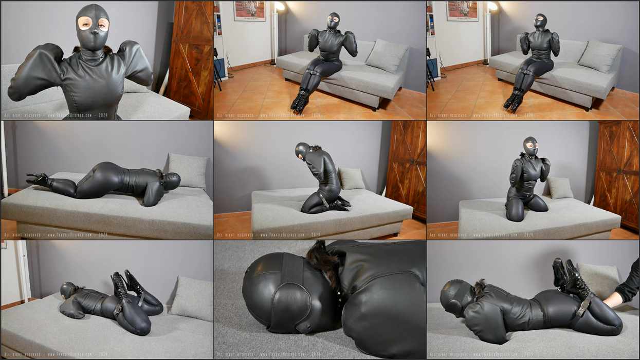 When little Nana wants to be tied up, there is only one way to please her. You have to gag her with medical tape. Make her wear a leather hood, very tight and adherent. Make her wear one of her straitjackets, in this case the butterfly. And then watch her enjoying her punishment…