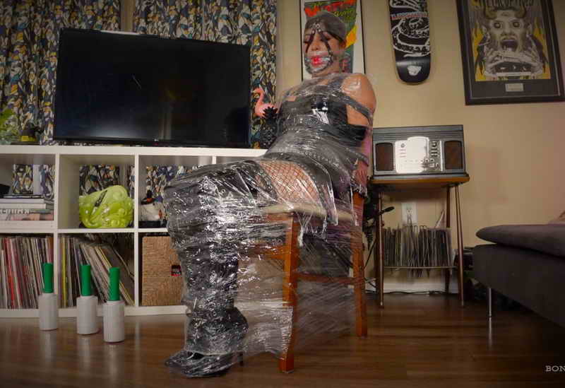 Sushii has a fetish for PVC & bondage, and the more she gets of one, the more she wants of the other. The clips starts out with Sushii dressed in thigh high boots, black PVC mini dress & a long black PVC trench coat. Sushii struts around the room admiring herself & taking selfies. She rips open the trench to expose her tight sexy dress, then poses for a few more selfies. Them she looks directly into the camera & says, “There’s two things I like, sexy shiny PVC & super tight bondage”. From off camera a huge pile of leather straps is tossed at her feet. Sushii squeals & says that she wants more, then a leather harness is thrown at her feet She picks up a strap, sXXXXs it & tells the camera that it better be tight. The next scene has Sushii sitting on a chair, wrapped tightly with the leather straps with a red harness ballgag in her mouth. She squeals & maons through the gag as she seductively struggles in her binds. This goes on for a few minutes until some rolls of plastic wrap roll into the scene. The final scene has Sushii mummified to the chair in plastic wrap wrigging & squealing in much delight.