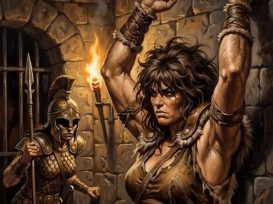 Fantasy art of hot Barbarian Body builder women chained in a dungeon in BDSM bondage