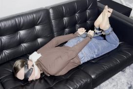 Blindfolded, Ballgagged, and Belt Bound – A Barefoot Bondage Struggle, Bound Soles
