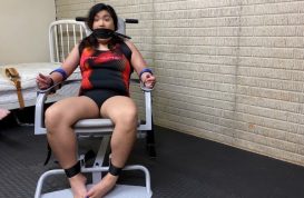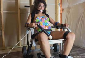 Fayth in trouble for false advertising, part 3 bondage chair, walking on elbow points, hogtaped, borntobebound