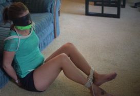 Claire Nerys Fun Wriggling While Bound and Gagged, Takes the Blindfold