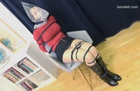 Helena chairtied with ropes & tape, pantyhosegag, bondish
