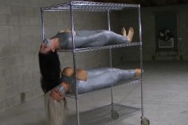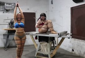 ZIP-Tie Agony for Two Tightly Tethered, Bra, Panty & Pantyhose MILFs Sandra Silvers & Caroline Pierce in the Machine Shop!
