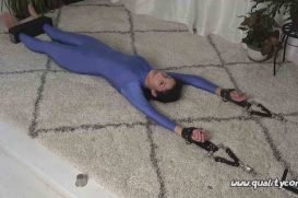 Detective Khrysta taken away, tightly tied with rope, tape gagged and wearing a real pink latex dress, Hollyrope