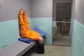 Fayth On Fire locked in jacket, chair, and cell