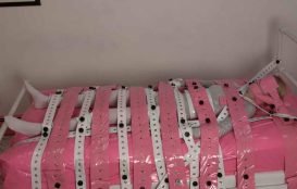 Claire – bed bound, gagged and hooded with her scarf collection, Muffled Screams