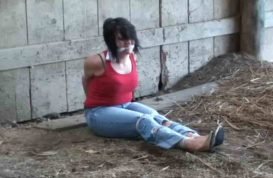 Dakkota and Cherry – Classy pantyhose clad business ladies tied back to back & tipped over… borntobebound