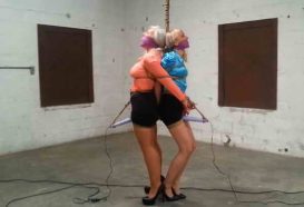 Two Semi-Suspended Sexy Silky Secretaries Sandra Silvers & Vivienne Velvet Suffer Aggressive Bondage Orgasms