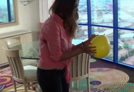 Noa hogcuffing herself with pink cuffs