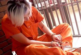 Lo Taken to station and put in jumpsuit cuffs and Shackles and jail cell