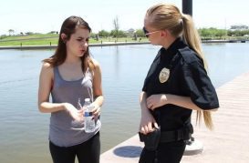 Renee Risque gets arrested and held by Officer Tani