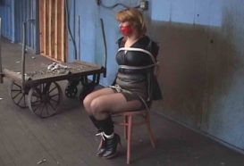 Dahlia – Hot blonde MILF car washing in wet satin is punished with tight bondage, jimhunterslair