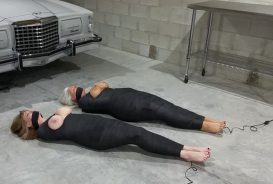 Two Buxom Mummified MILFs Sandra Silvers & Darla Crane Endure Agonizing Bondage Orgasms in the Auto Shop