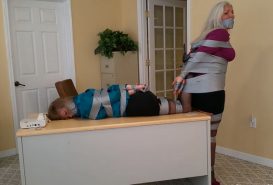 Ladyboss Lisa Harlotte Doles Out Bonus Bondage Orgasms to MILF Secretaries Sandra Silvers and Darla Crane